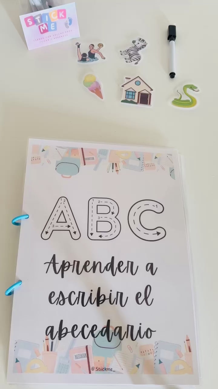 ¡Descubre la forma más divertida de aprender las letras del abecedario! Este cuaderno interactivo permite a los niños practicar la escritura de las letras con un rotulador, borrar y volver a intentarlo. Además, incluye pegatinas coloridas para reforzar el aprendizaje de manera lúdica.