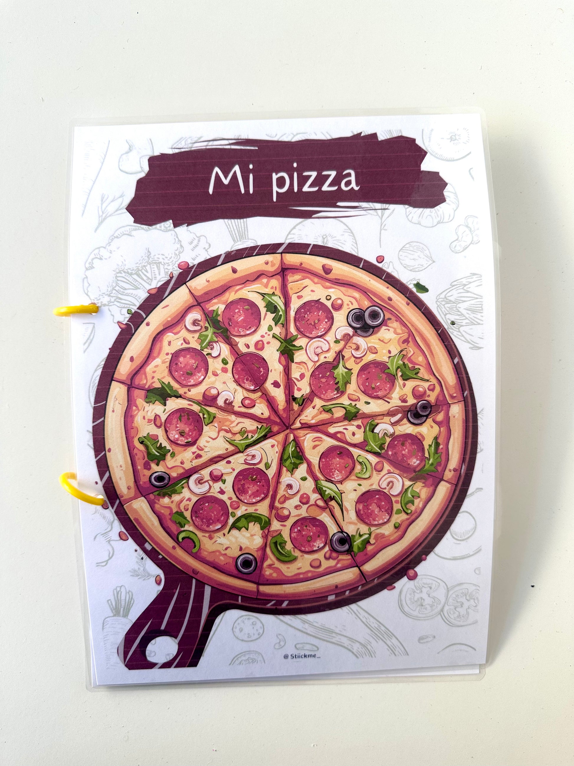 ¡La diversión y el aprendizaje se combinan en este delicioso álbum interactivo! Los niños podrán aprender números mientras preparan pizzas. Cada receta de pizza está asociada a un número de ingredientes, y los pequeños deben colocar las pegatinas correspondientes para completar la pizza, ¡todo mientras practican sus habilidades matemáticas!